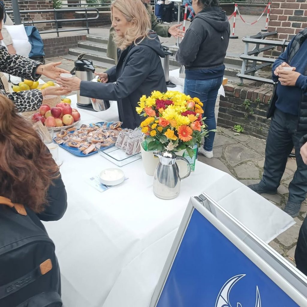 So haben wir auch in diesem Jahr mit Liebe und Freude einen Stand mit Kaffee, Tee, Kuchen & Obst organisiert, um den Menschen, die mittwochs zur Lebensmittelausgabe in St. Karl kommen, die Wartezeit zu versüßen.