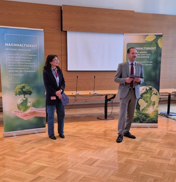 Unter der Schirmherrschaft von Lamya Kaddor hatten wir die wertvolle Gelegenheit, die spirituelle Perspektive des Sufismus auf Nachhaltigkeit zu präsentieren. Im Sufismus steht das Prinzip des Gleichgewichts im Mittelpunkt – ein Bewusstsein dafür, dass inneres Wachstum und äußere Verantwortung untrennbar miteinander verbunden sind. Der Austausch mit unseren Gästen hat verdeutlicht, wie spirituelle Werte und politische Strategien Hand in Hand gehen können, um eine nachhaltige und gerechte Zukunft zu gestalten.